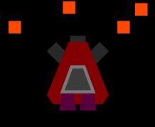The Angler shoots two diagonal streams and one upward stream. It may not shoot as many bullets as the Boss Destroyer, but it can take out bosses from their weak spot diagonally. The Angler is the only ship to shoot orange bullets.