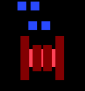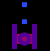 The Purple is one of two purple ships and the only dual hull ship to have a cockpit near the back. The Purple has the same properties as the Blue.